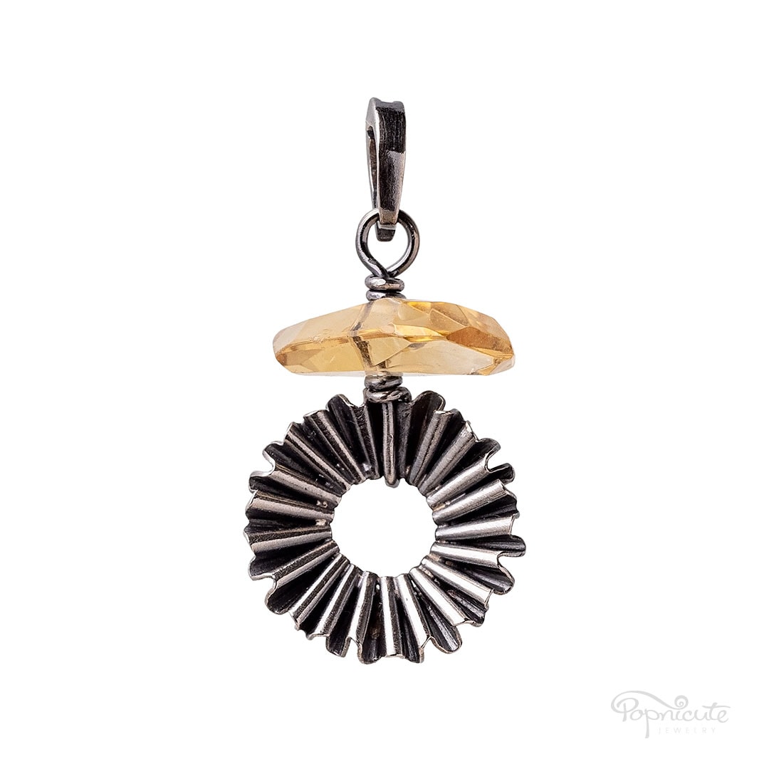 Removable sterling silver citrine charm/pendant with a handmade corrugated flower in fine silver. The citrine bead is clear and faceted. It’s a unique shape.