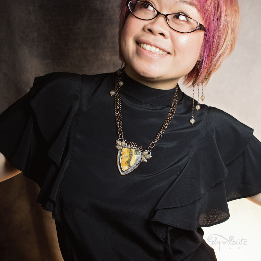 • I am whole bumblebee jasper artisan necklace by Popnicute Jewelry. Argentium silver, brass, copper. Yellow and black.